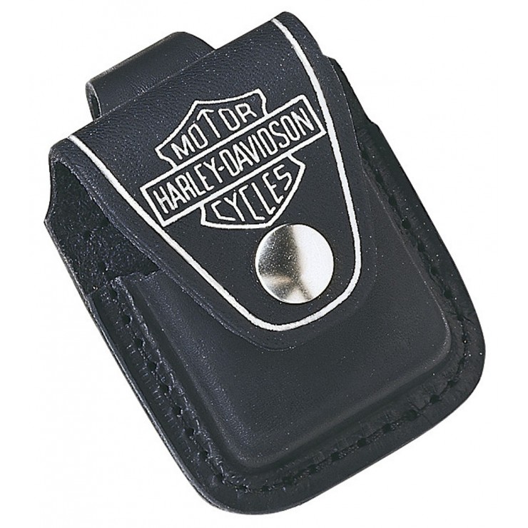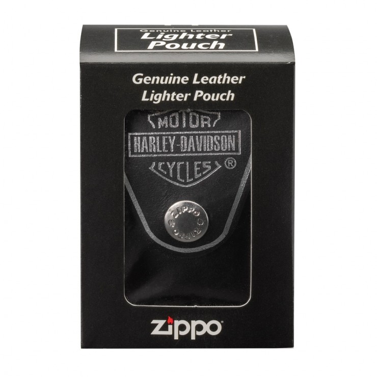 Zippo’s Harley-Davidson® genuine leather black lighter loop pouch has a stylish design, yet is easily accessible. Features of this lighter pouch include a wide leather loop that fits belts up to 2” wide and holds any Zippo windproof lighter securely. Comes packaged in a black Zippo box.